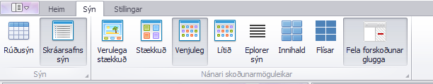 Undir Sýn er hægt að velja á milli Rúðusýn eða Skráarsafnsýn.