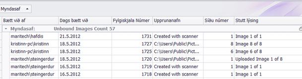 Rúðusýn getur gefið yfirlit yfir þau skjöl/myndir sem eftir á að tengja við reikning. Hægt er að velja/fjarlægja dálka inn á yfirlitið með því að hægrismella á fyrirsagnarlínuna.