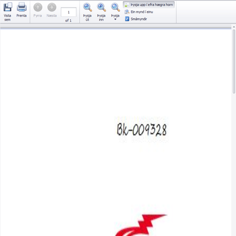 Þegar hnappurinn Þysja upp í hægra horn er virkjaður þá sýnir forskoðunarglugginn sjálfkrafa stækkaða mynd af efra hægra horni skjalsins. Það er gjarnan notað til að skrá inn bókunarkerfis númer skjals. Nú viðheldur forritið þessari stillingu þó flett sé á milli skjala þar til hnappurinn er af-virkjaður.