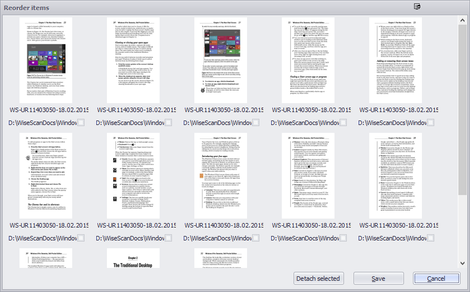 Hægt er að endurraða síðum í Pdf skjölum sem búin eru til í Wise Scan með því að smella á Endurraða hnappinn.