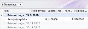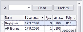 Sýna finna flöt - Fáum leitardálk fram þar sem hægt er að leita t.d. eftir nafni lánardrottins, bókunardags. ofl.