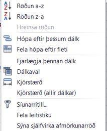 Hér er hægt að velja röðun á listanum Röðun a-z, Röðun z-a.
