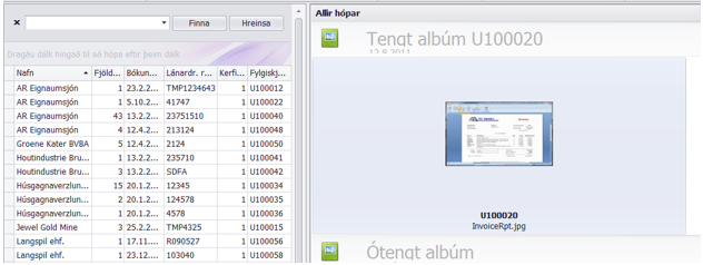 Hópa eftir þessum dálk - Reikningar verða settir í hópa eftir þeim dálki sem bendill er staðsettur í . Einnig er hægt að velja að draga þann dálk efst í listann.