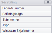 Til að fá fleiri dálka inn á reikningalistann er valin Dálkaval. Til að bæta dálkinum við er tvísmellt á hann með músinni.