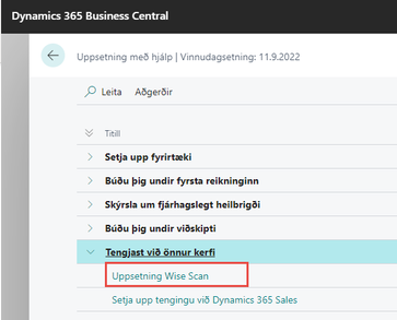 Það er hægt að nýta sér uppsetningarálfinn fyrir Wise Scan inni í Business Central.